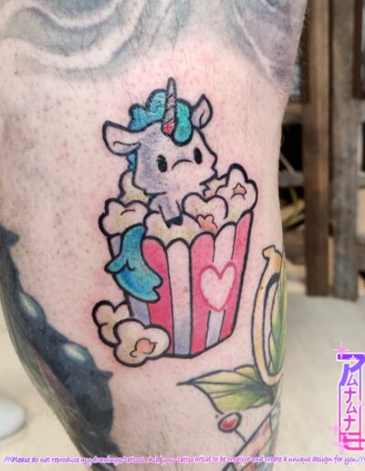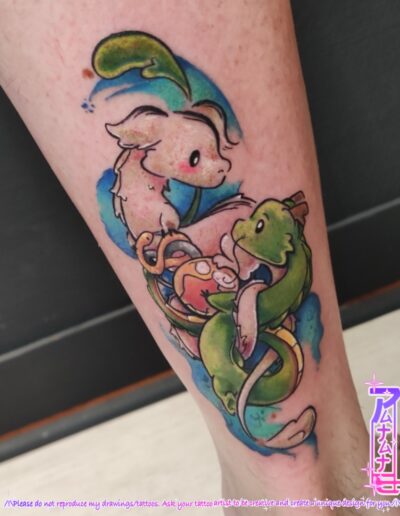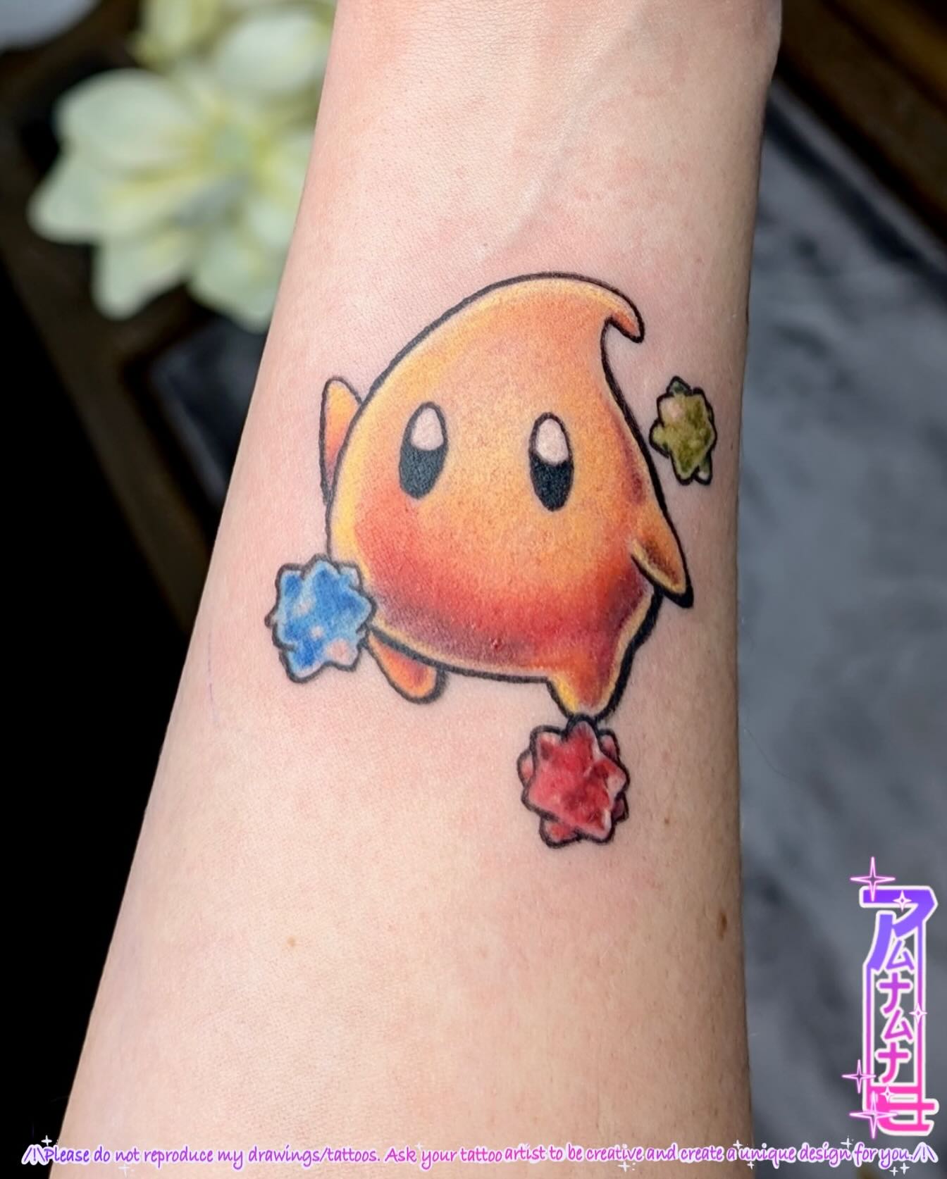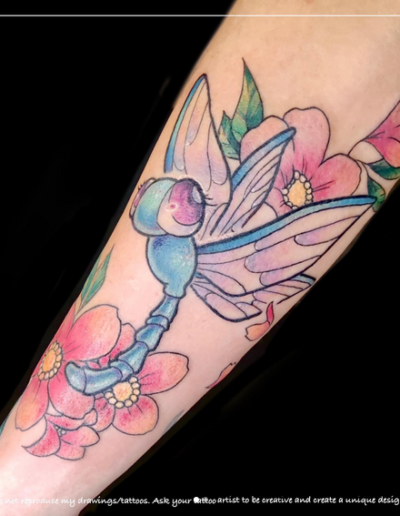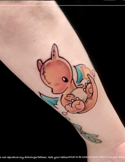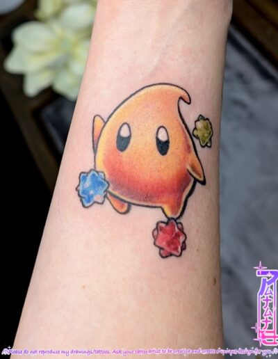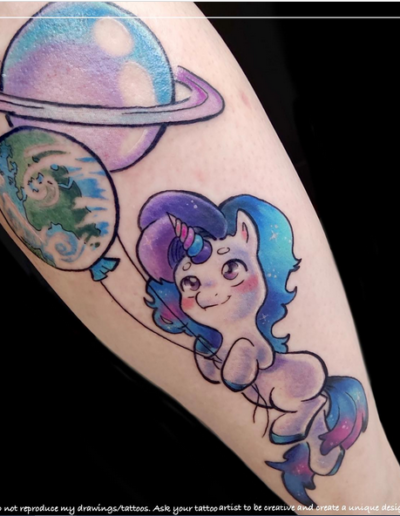 Je fais des petits tattoos mignons gravitant autour de la pop culture et des animaux et j’aimerais faire tout plein de couleurs vives !