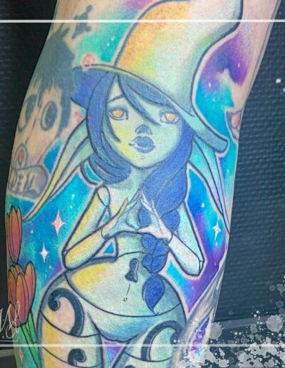 Coucou moi c’est Woodolls, ou Lulu! Je « gribouille » la peau des gens à Chrysalide depuis 2016 !